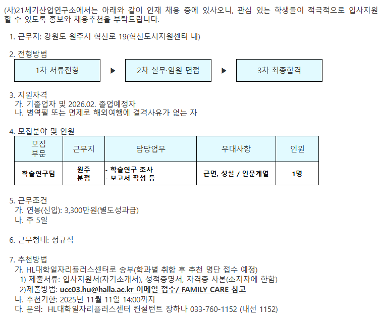 <구인의뢰서> 21세기산업연구소