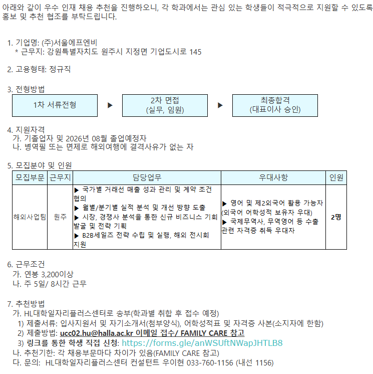 제출방법: ucc02.hu@halla.ac.kr 이메일 접수/ FAMILY CARE 참고